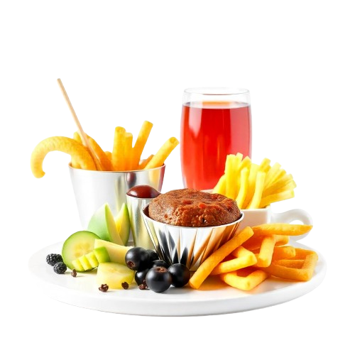 Indulge in the perfect pairing of crispy chips and creamy dips, all washed down with refreshing fruit juice. Elevate your snacking experience and savor every bite.